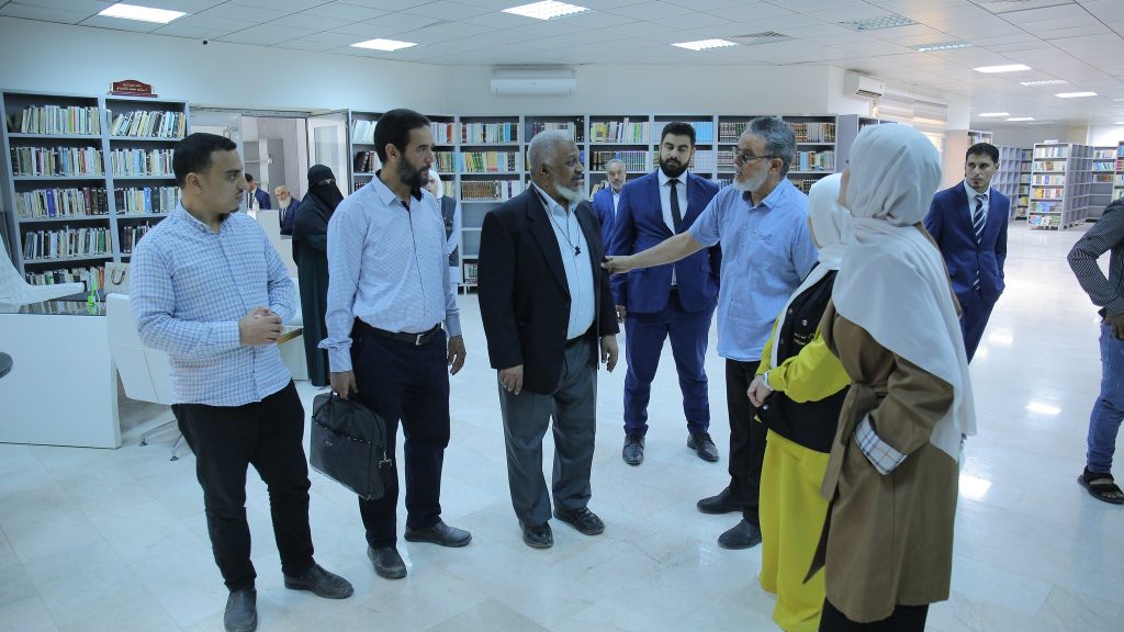 وقد تجول وفد مركز الشيخ علي الغرياني للكتاب في قاعات وأقسام البيت الليبي للعلوم والثقافة، وما يضمه هذا الصرح الثقافي من مرافق، بدءا من أقسام المكتبة وما تحويه رفوفها من نفائس الكتب والإصدارات، مرورا بقاعات القراءة، وكذلك قاعات التدريب والنشاطات، وغرف الاجتماعات، والورشة الخاصة بصيانة المصاحف والكتب، وانتهاء بالاستوديو الخاص بالتسجيل الصوتي والمرئي، حيث قدمت إدارة البيت الليبي للعلوم والثقافة شرحا وافيا عن الأقسام، كما قدموا نبذة عن أنشطة البيت ومبادراته العلمية والثقافية والتوعوية.