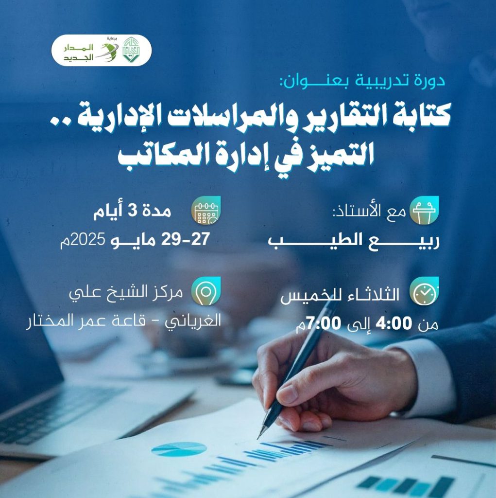 دورة تدريبية بعنوان: كتابة التقارير والمراسلات الإدارية .. التميز في إدارة المكاتب