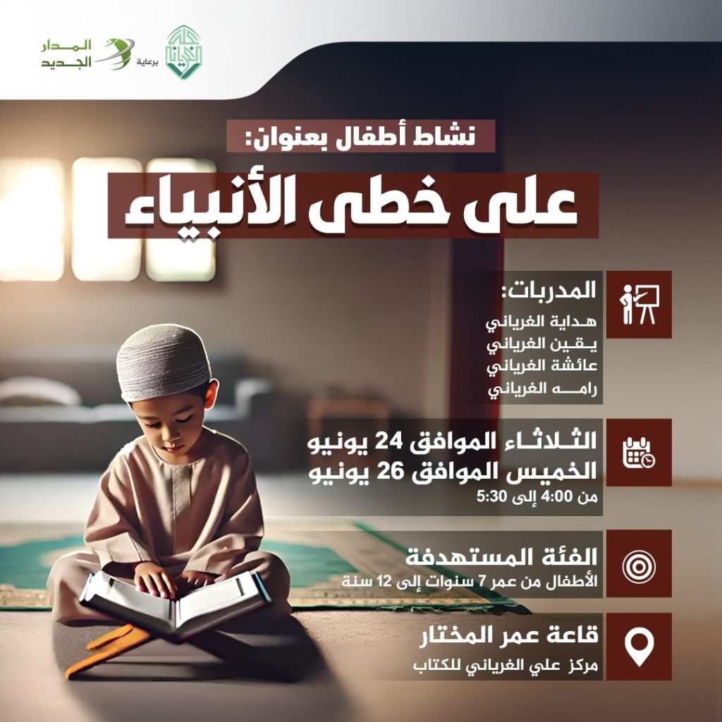 نشاط الأطفال بعنوان: على خطى الأنبياء،مع المدربات: هداية الغرياني، يقين الغرياني، عائشة الغرياني، رامة الغرياني .