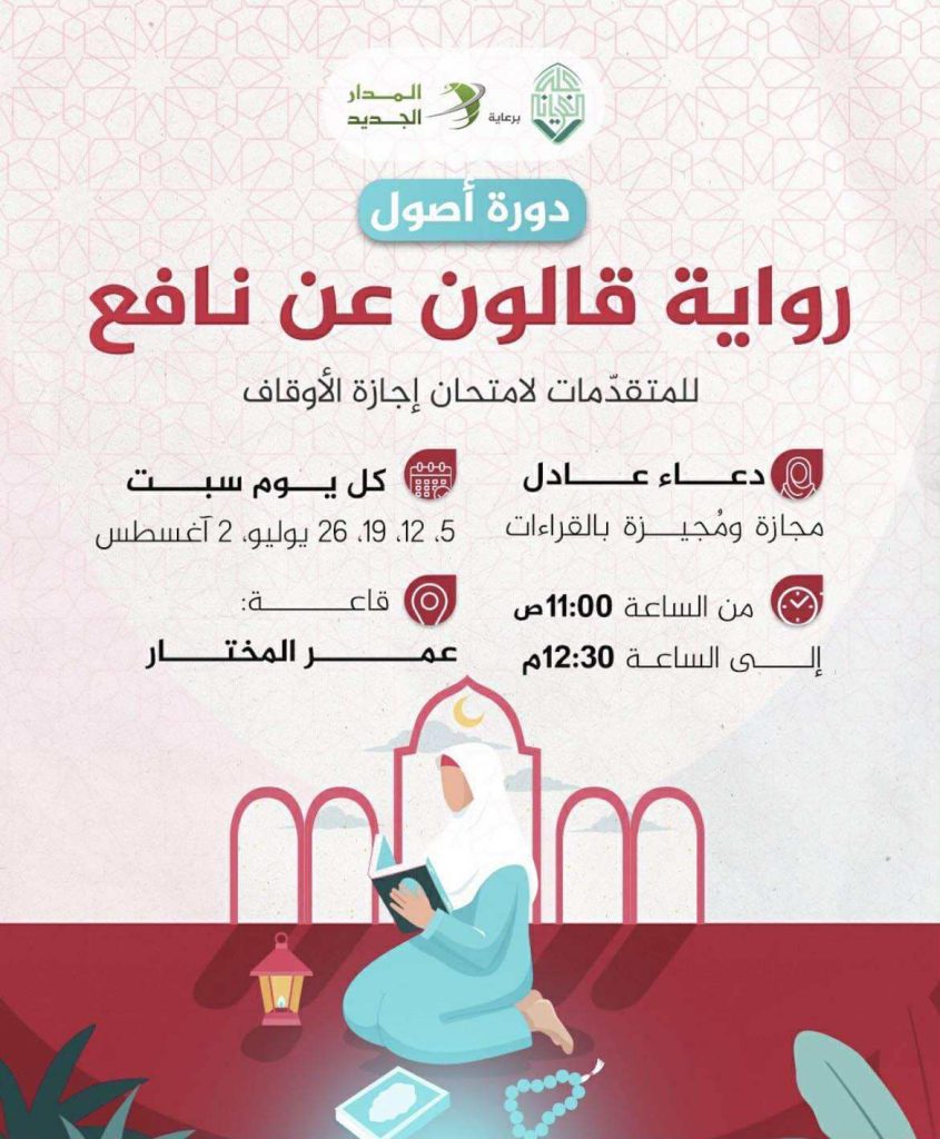 دورة بعنوان: أصول رواية قالون عن نافع، مع الأستاذة: دعاء عادل.